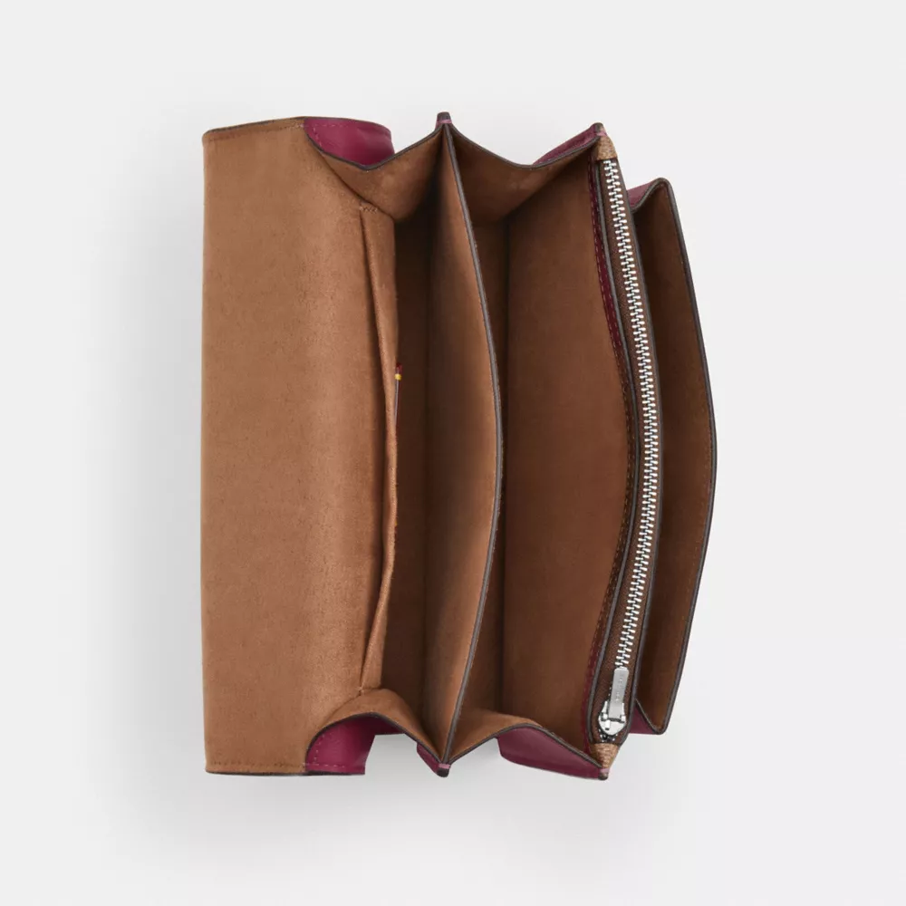 - Strap with 22" drop doubles up for three ways to wear: short or long on the shoulder or crossbody style