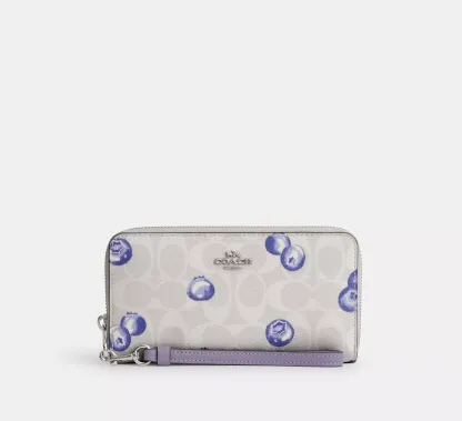 Long Zip Around Wallet In Signature Canvas With Blueberry Print