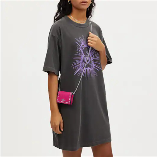 Detachable chain strap with 23 1/4" drop for shoulder or crossbody wear