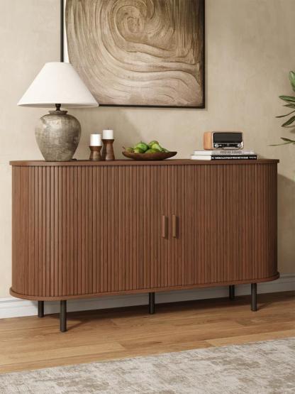 ·SPECIALLY DESIGNED: This Sideboard Buffet Cabinet is specially designed with curved edges making it a perfect accent sideboard. The standard sliding groove track for sliding doors provides effortless gliding. This special and innovative storage cabinet is designed to be compact and provide enough storage.