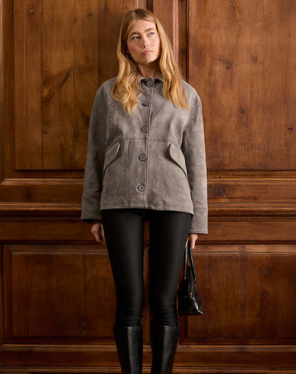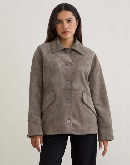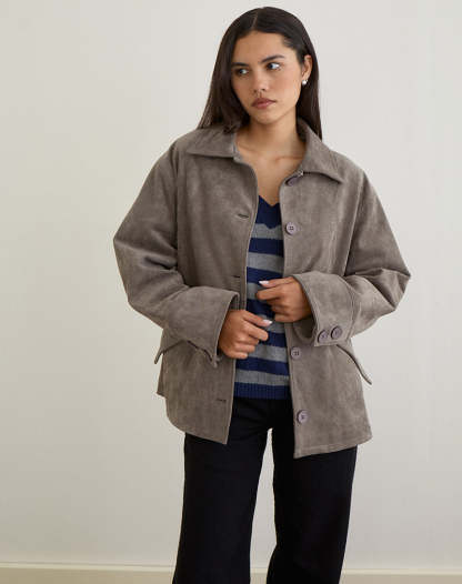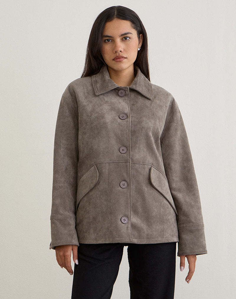 Orson Jacket in Faux Suede Olive Grey