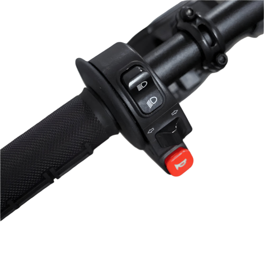 Motorcycle Style Kill Switch: Cut power to the motor in the click of a switch.