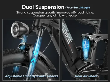 Equipped with adjustable hydraulic suspension fork and four-bar suspension (rear suspension), as well as fat tire, the RS-A08 offers the smoothest ride in all conditions.