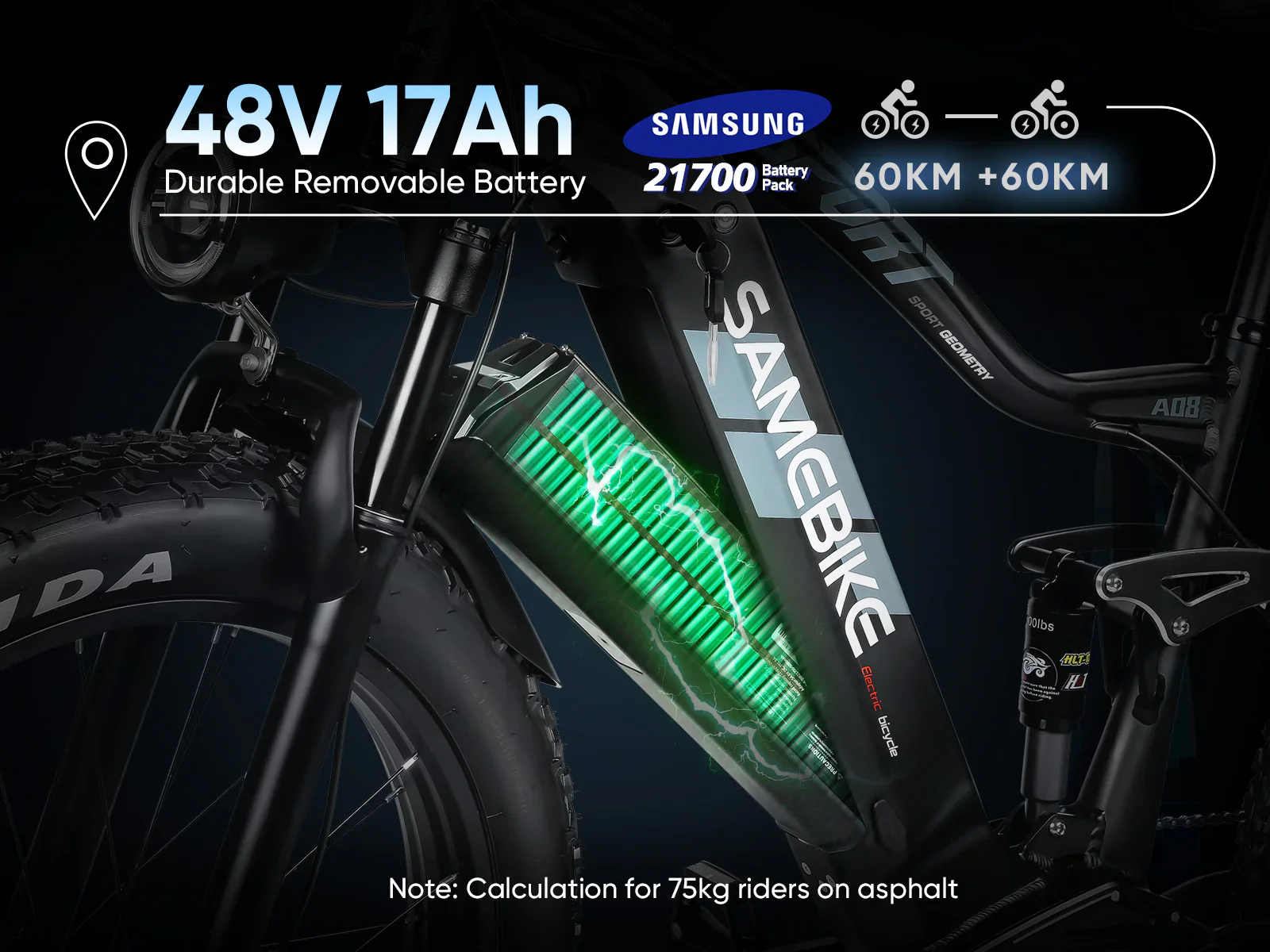 Go the distance and then some! With the Car-grade battery, ride up to a whopping 60km on pure electric. Out for longer? Switch to assist mode and double that range!