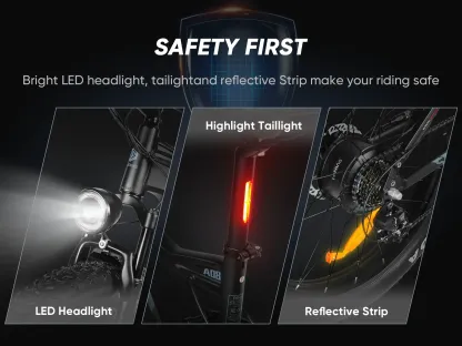 Super bright LED headlights, taillight and reflective strip provide a safer riding in low conditions.