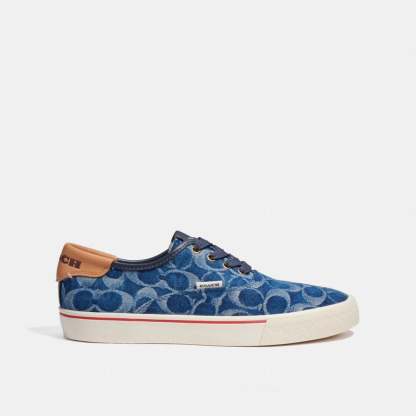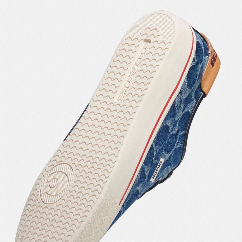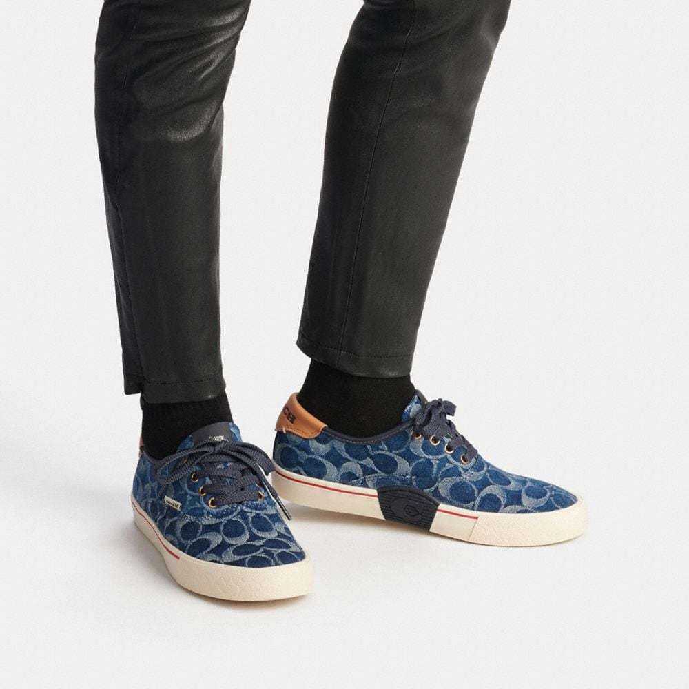 Signature denim and leather upper