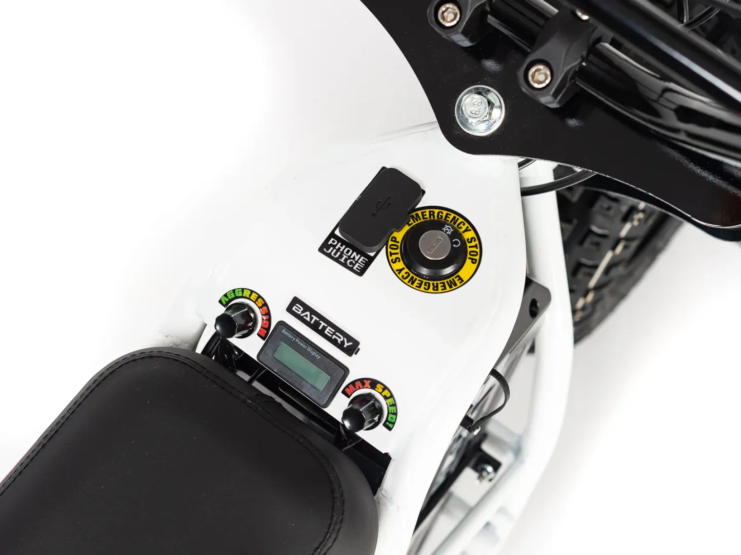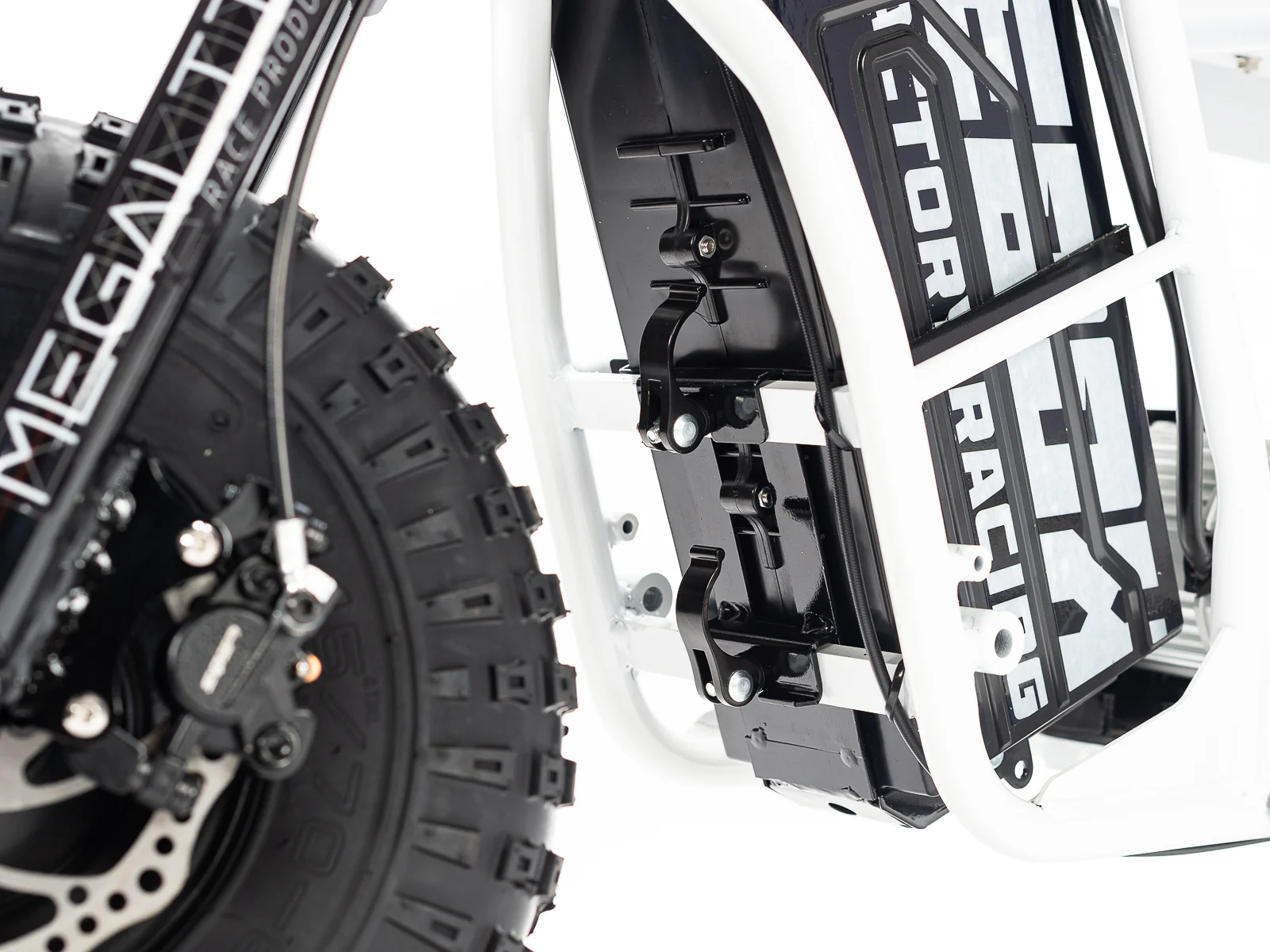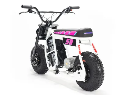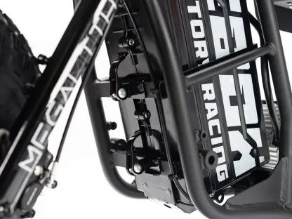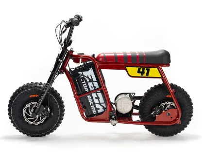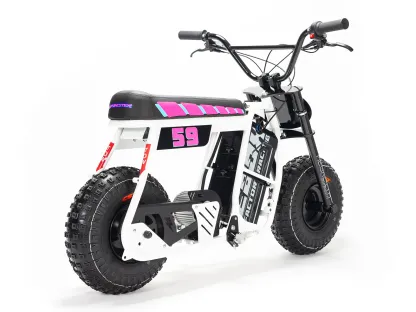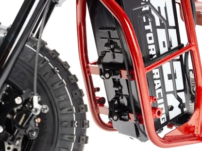 | Frame construction | High strength steel, powder coated, removable motor plate, integrated chain tensioner, loop tail design, quick release battery system, 2-point foot peg position mounts, stunt peg compatible. |