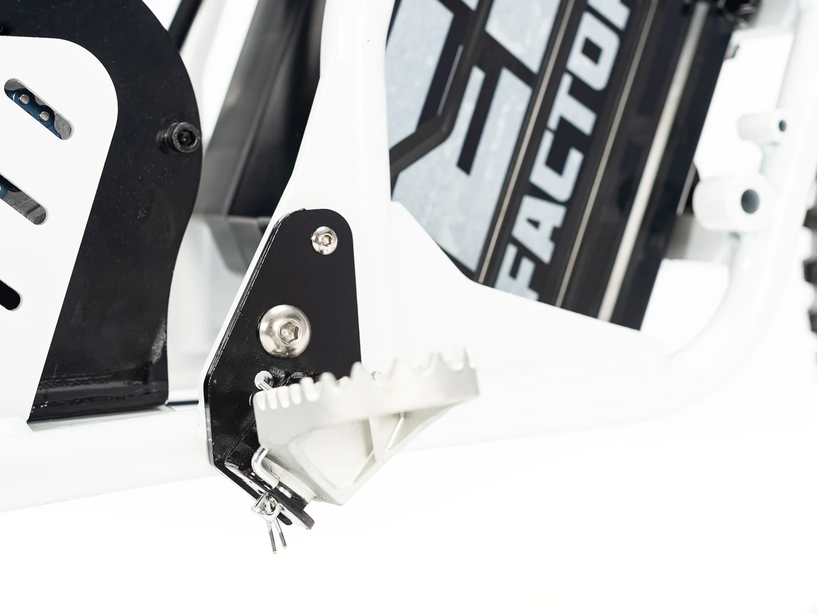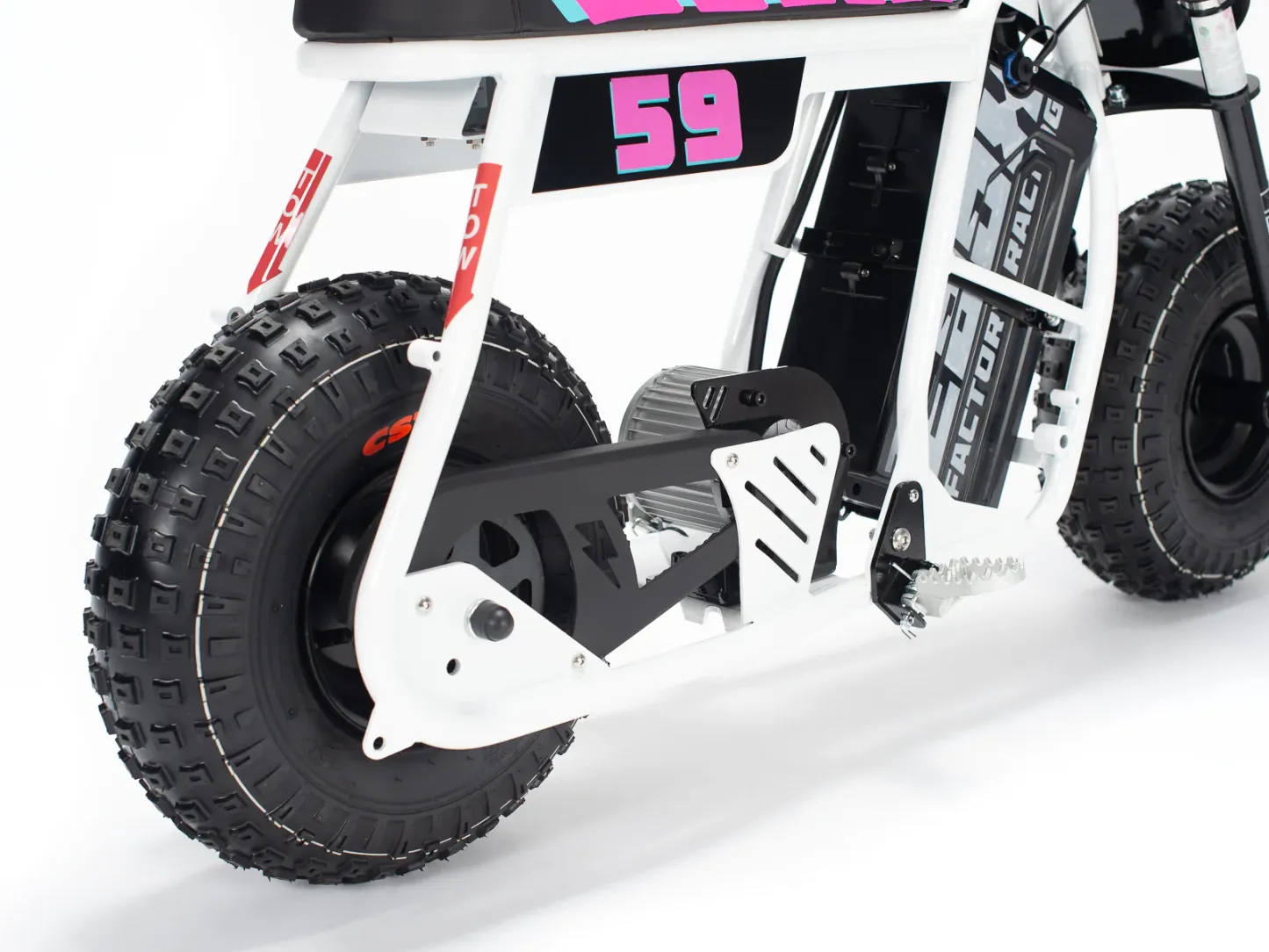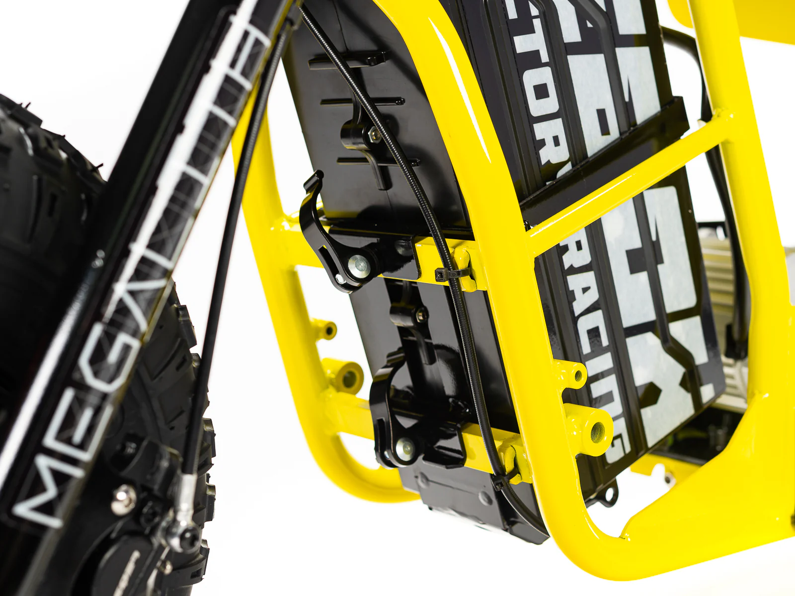 | Frame construction | High strength steel, powder coated, removable motor plate, integrated chain tensioner, loop tail design, quick release battery system, 2-point foot peg position mounts, stunt peg compatible. |